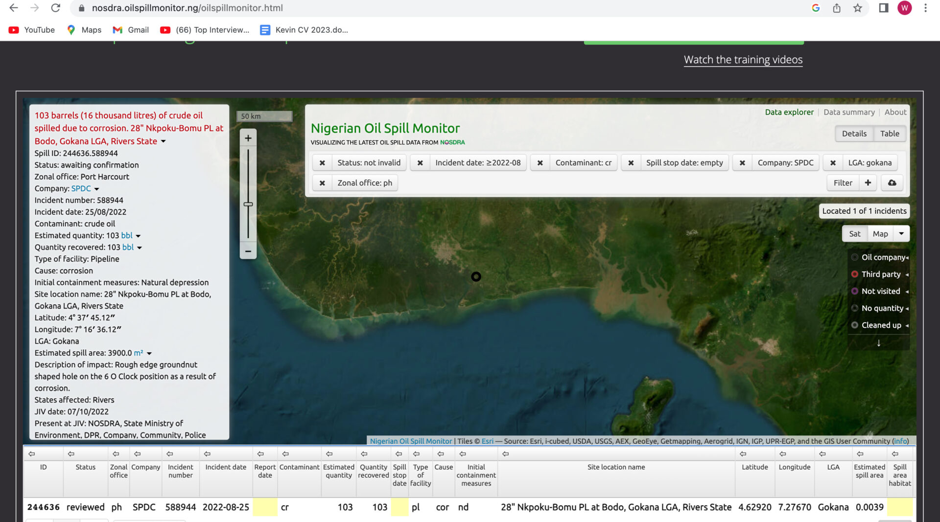 The Shell Petroleum Development Company of Nigeria (SPDC) confirmed there were three oil spills in Bodo last August. The company also said it works quickly to clean up spills and that compensation is paid to individuals and communities who are impacted.