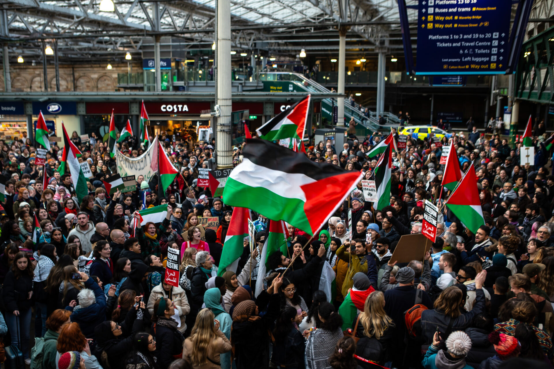 Hundreds of protesters occupied Waverley Station in Edinburgh on November 4, 2023, as part of a larger demonstration that included a similar protest in Glasgow Central.