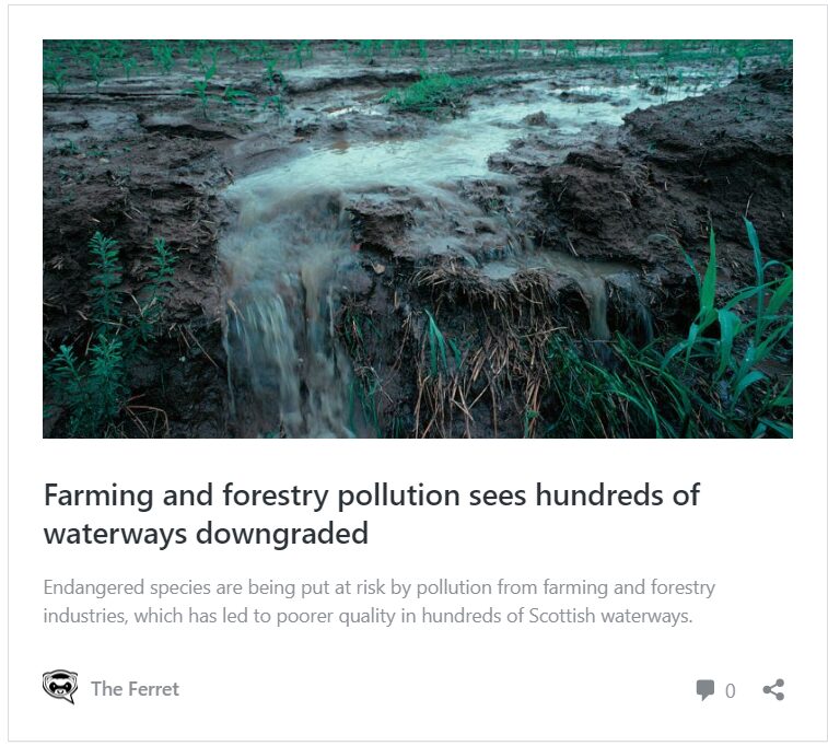 The Ferret obtained the report, its data and warning letters sent to polluters, via a freedom of information (FOI) response from Sepa. An FOI from Scottish Forestry, which is responsible for regulation, confirmed that half of the rule-breaking sites are owned by Forestry and Land Scotland (FLS), which manages around a third of Scotland’s forests on behalf of the public.