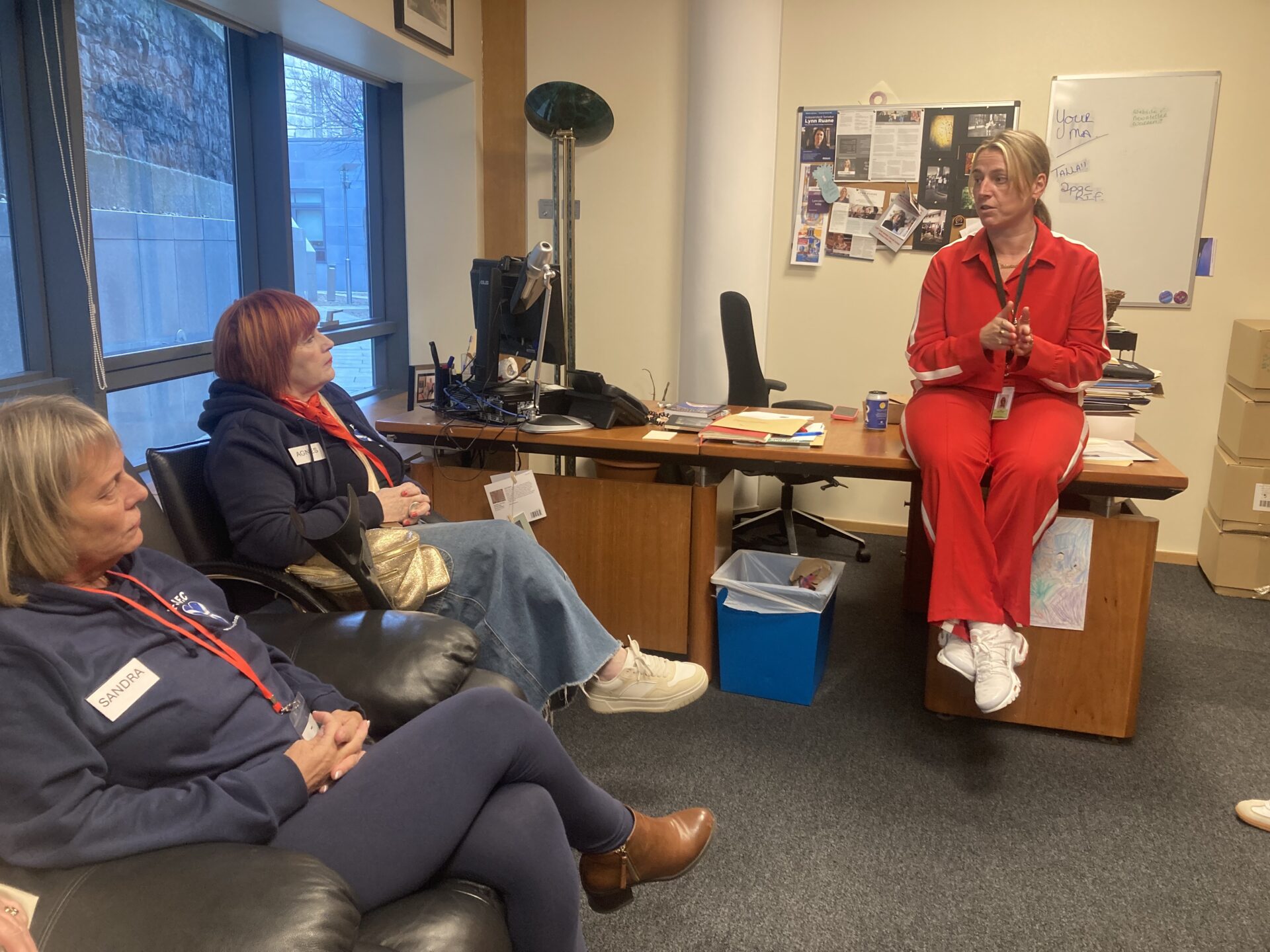 We’re met in the drop-in area by workers and support staff, including Phyllis Corish, who is preparing to take waiting clients through for an acupuncture session.
