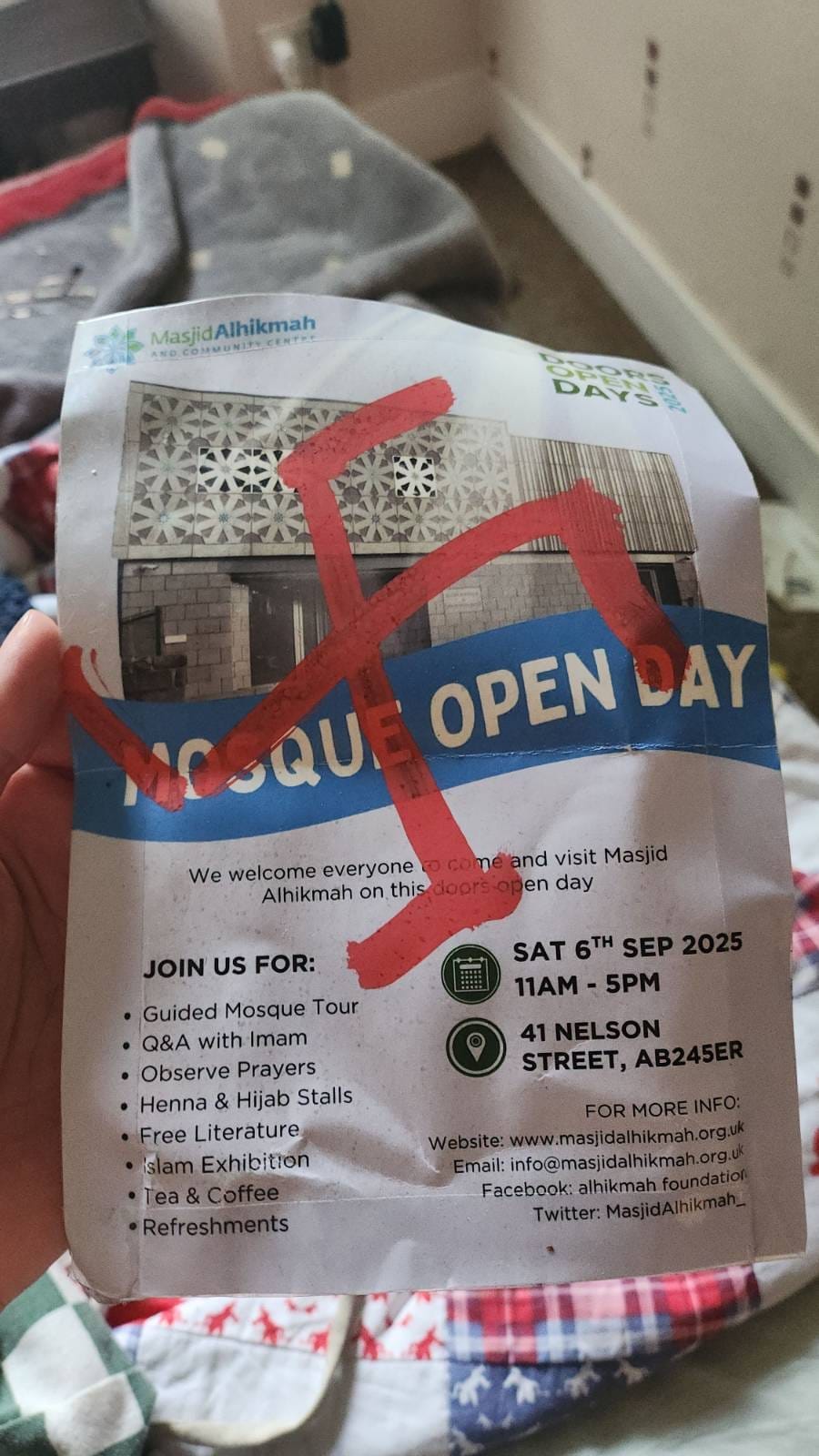 There have been serious problems elsewhere. In Aberdeen, we’ve been speaking to anti-fascist sources for months but on condition of anonymity as they fear reprisals. There’s been a litany of incidents in the city including attacks on muslims and asylum seekers. Someone online suggested burning down a mosque and in July a teenager who threw paint over a mosque and smashed a window while people were inside was sentenced to six months in custody. Jayden Wallace admitted targeting Aberdeen Mosque and Islamic Centre in March. Several mosques have been attacked this year in Scotland, as previously reported by The Ferret.