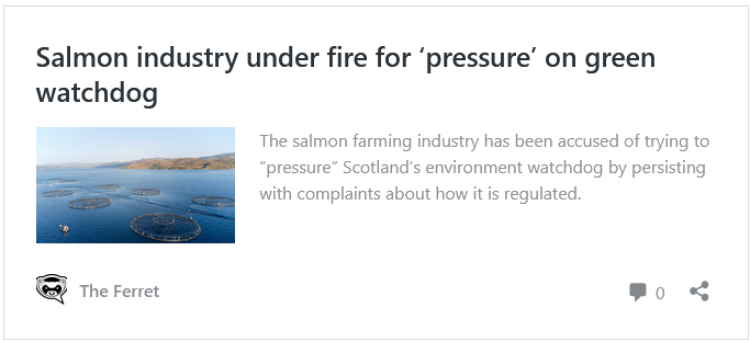 The Ferret reported in April 2024 that Salmon Scotland also privately lobbied Scottish ministers to block or delay plans for the lice controls during 2023. We disclosed in September 2024 that Salmon Scotland was still concerned about a formal complaint it made about Sepa’s regulation in 2019.