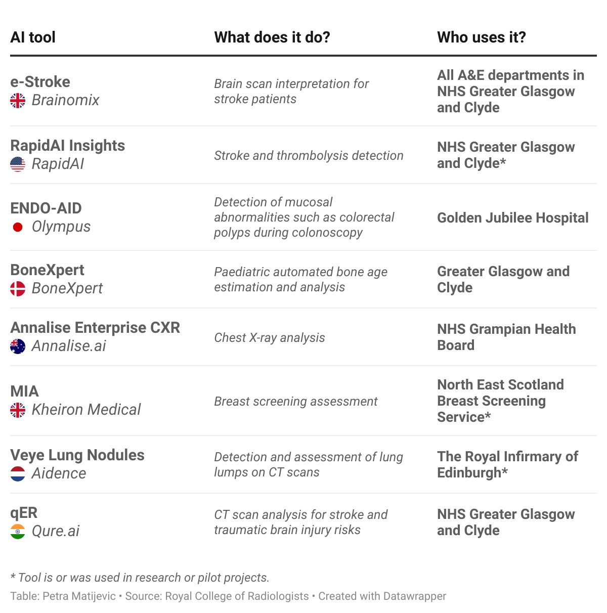 There are 44 AI tools listed on the AI registry by the Royal College of Radiologists. Eight are listed as used by Scottish NHS health boards.