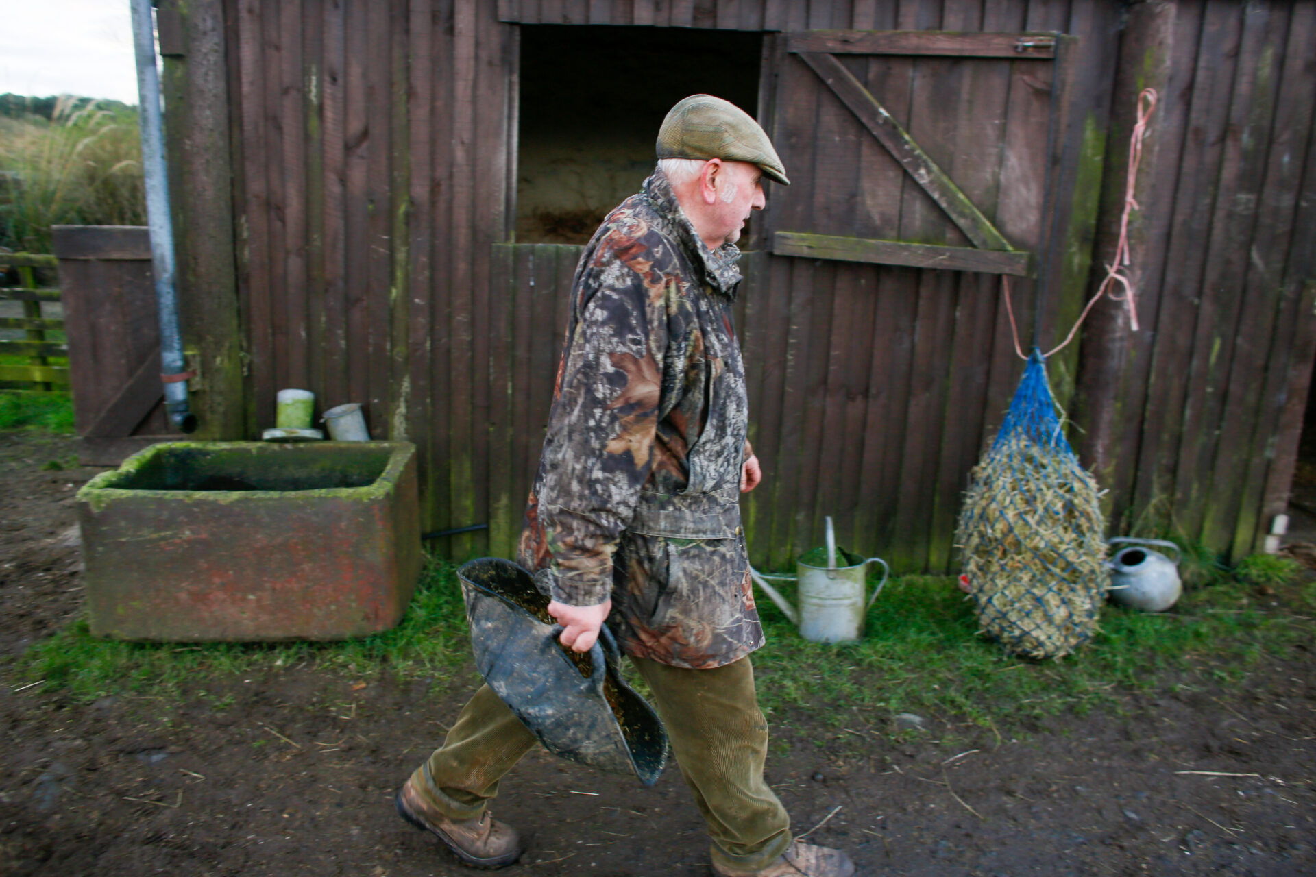 Up on Bute’s moorland, Ian Sinclair is preparing to bring his horses in for the night. As the sun dips behind the hills, he calls for his animals, tells us to stand back, and opens the gate to their field. The horses trot to their stables and happily eat their food.