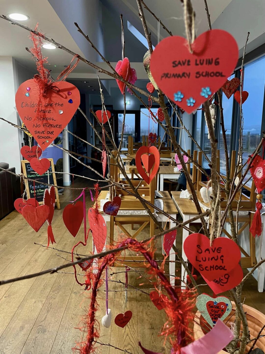 Shewants to work with the council to find a solution. Handmade hearts, made by islanders of all ages in support of the school, were delivered to the council’s headquarters in Kilmory. She was hopeful to see the local authority put them on display, which, she said, “shows they are listening”.