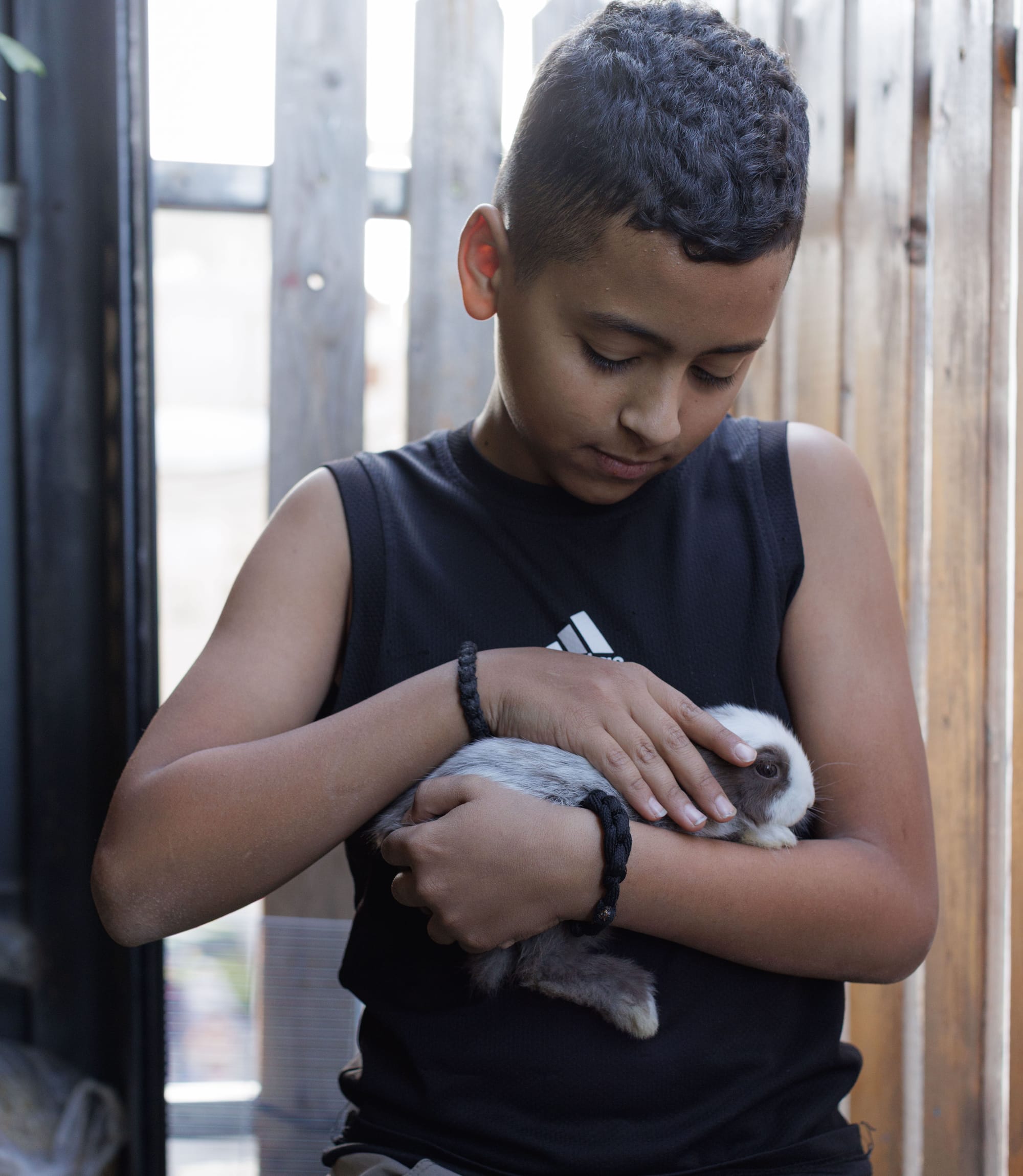 Mostafa and his rabbit Oreo. Credit Valerio Muscaella