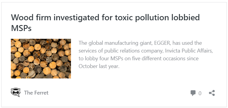 The Canadian forestry company, West Fraser, went to court to force the Scottish Environment Protection Agency (Sepa) to allow a contaminated by-product to be burnt in an energy plant at Cowie in Stirlingshire.