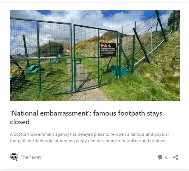 Another campaigner, Angus Miller from the Edinburgh Geological Society, pointed out that access had also been prevented to a historic rock outcrop known as Hutton’s section, near the Radical Road. “HES have been moving incredibly slowly on this, and communication has been extremely poor,” he said.