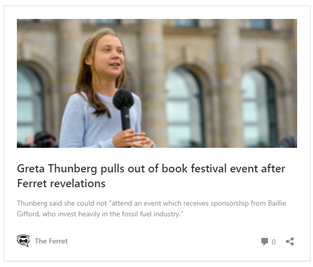 In July we revealed that the main sponsor of Edinburgh’s famed book festival, investment company Baillie Gifford, is a fossil fuel investor.