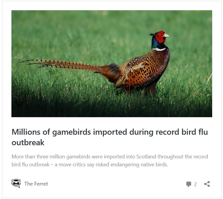 Paul Walton, RSPB Scotland’s head of habitats and species, warned of potential impacts on native animal species, including the potential to pass on disease – particularly bird flu – and the risk of gamebirds attracting more predators, which could also prey on other species.
