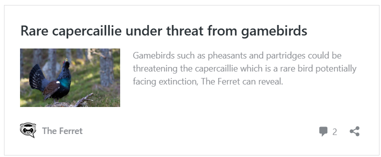 RSPB Scotland has previously urged the wildlife agency to take action around the release of gamebirds in or around protected areas containing capercaillie, an endangered native bird.