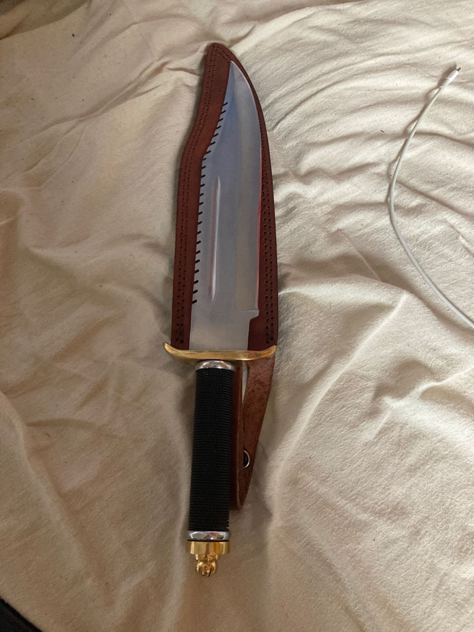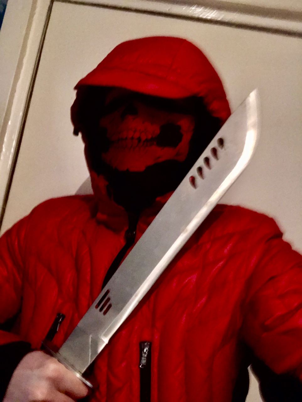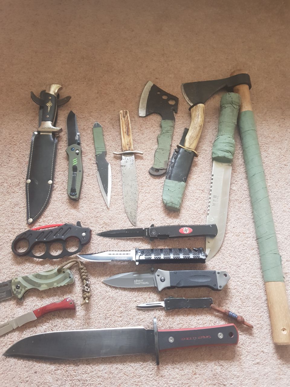 Adam shared a picture of his collection of 13 knives – one of which featured the Nazi swastika – two axes and a knuckleduster.Another user posted an image of himself posing with a machete.