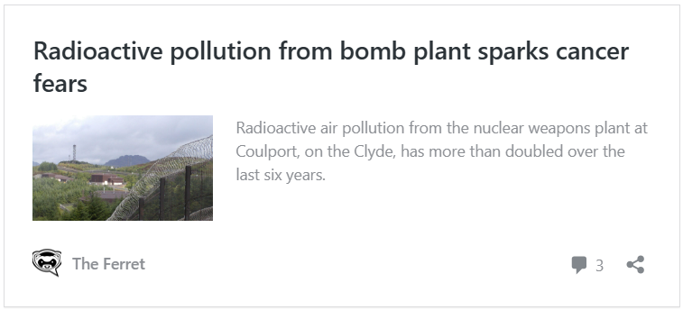 “The UK’s nuclear weapons aren’t safe for workers and wildlife, they don’t work when tested, and their manufacture is not efficient. Nor are they delivering a good deal for taxpayers.”