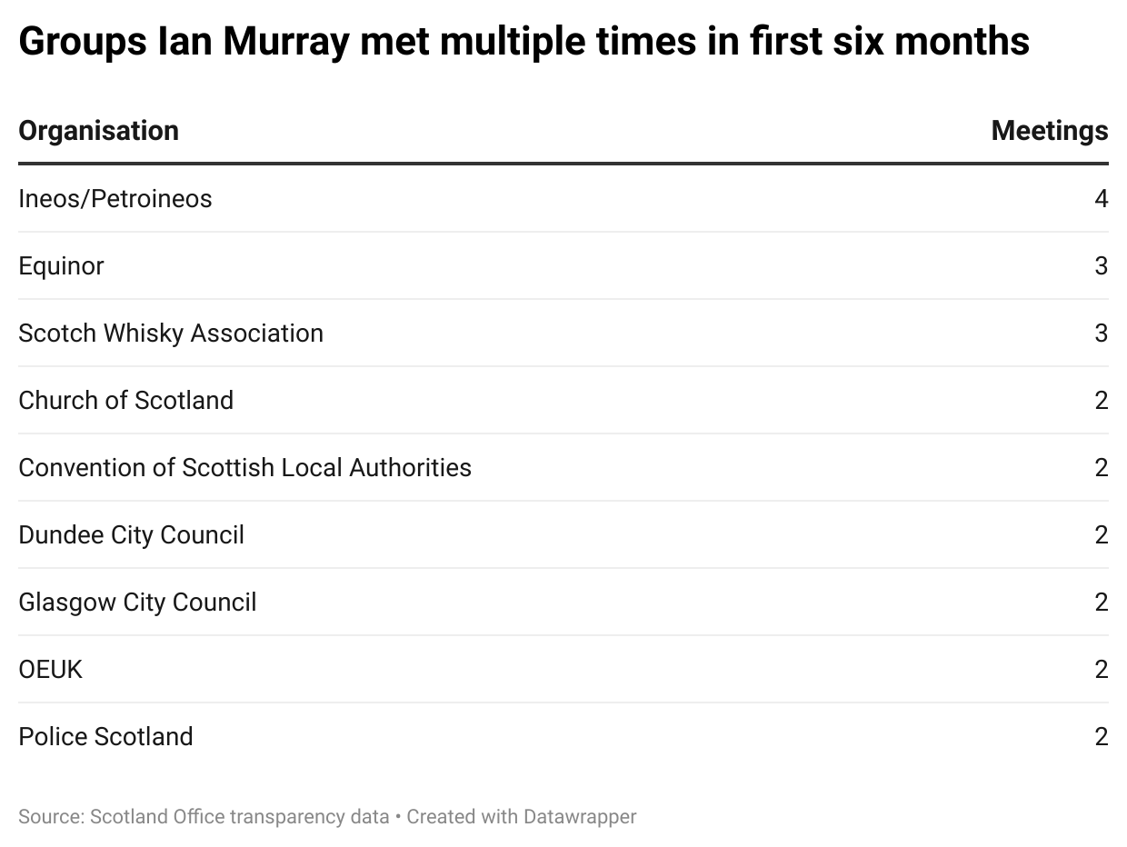 Records of Murray’s meetings are available for his first six months in the Scotland Office.